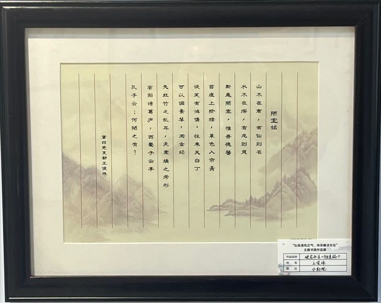 一幅幅寫滿正氣的書法、一幅幅描繪廉潔的畫卷,書畫展從籌備到展出歷時(shí)近20天,面向基層黨支部征集國(guó)畫、水彩畫、書法、攝影等作品80余件。參展作品內(nèi)容豐富、風(fēng)格多樣,創(chuàng)作者們把廉潔自律、勤政為民、警示教育、廉潔家風(fēng)等內(nèi)容融入作品中,充分體現(xiàn)廉潔文化的豐富內(nèi)涵,形象、生動(dòng)、直觀地傳遞給參觀者,吸引廣大黨員干部及職工群眾駐足觀看。