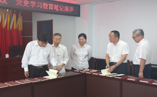 為進(jìn)一步提升黨史學(xué)習(xí)教育效果,持續(xù)推動學(xué)習(xí)教育走深走細(xì)走實,激發(fā)我公司各黨支部黨員學(xué)習(xí)黨史的自覺性和積極性,9月6日,我公司黨委開展“以評促學(xué)、以展促改”黨史學(xué)習(xí)教育筆記本展評活動。此次筆記展評活動,由公司領(lǐng)導(dǎo)崔作銘、呂希汶、王望寬和各黨支部書記擔(dān)任評委,按照現(xiàn)場推選的方法開展評比活動。展評過程中,各位評委認(rèn)真翻閱,按照“四查四看”的方式,對照理論學(xué)習(xí)計劃要求,對我公司黨員黨史學(xué)習(xí)筆記進(jìn)行評比。評委挑選出10本優(yōu)秀筆記進(jìn)行展示,供其他黨員參考學(xué)習(xí)和借鑒,并對今后的理論學(xué)習(xí)提出要求。