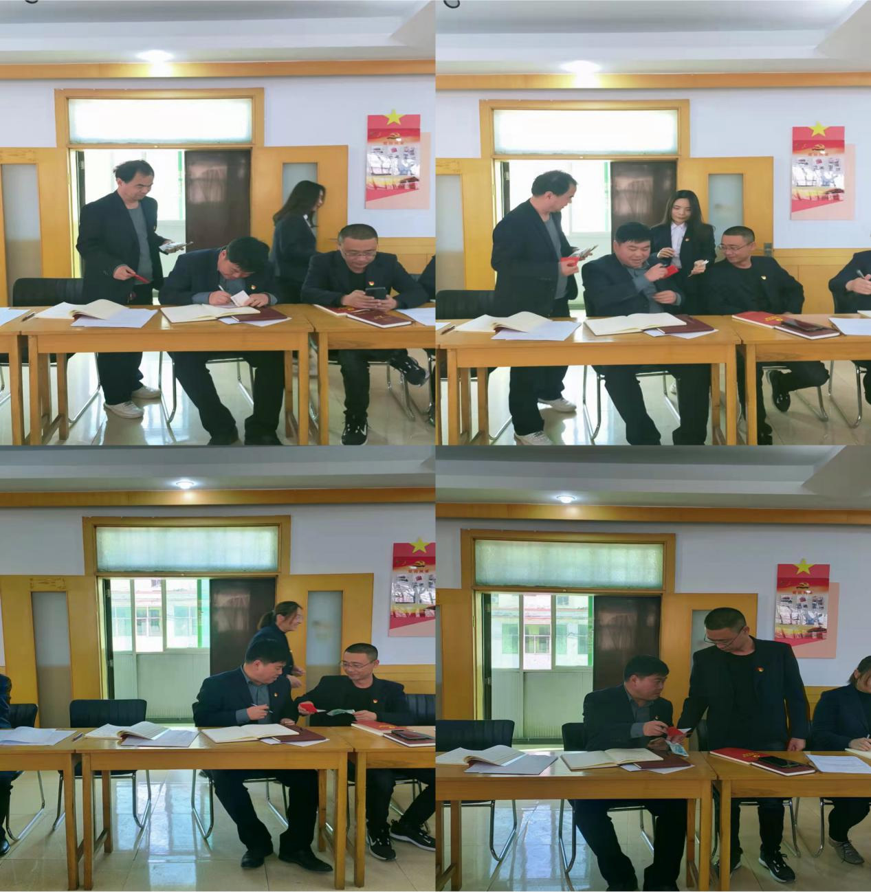 會(huì)前,全體黨員逐個(gè)向支部繳納了本月黨費(fèi),并進(jìn)行了黨費(fèi)收繳臺(tái)賬登記。