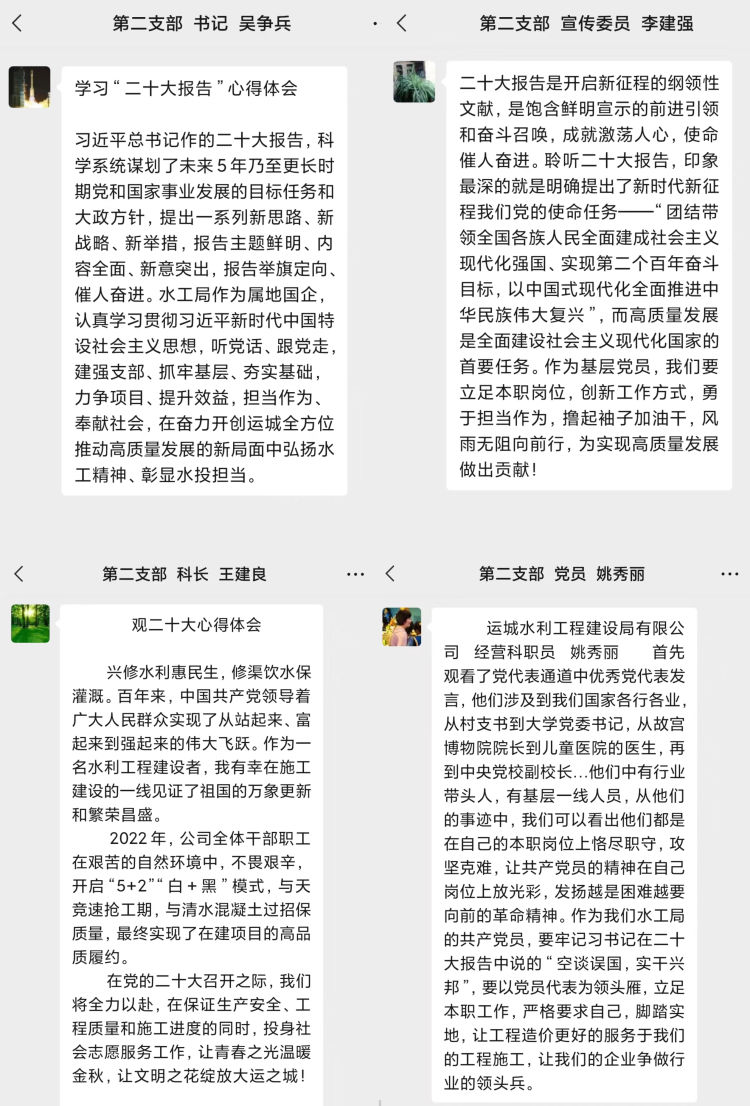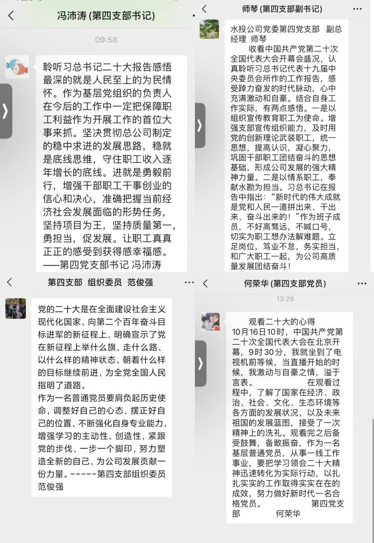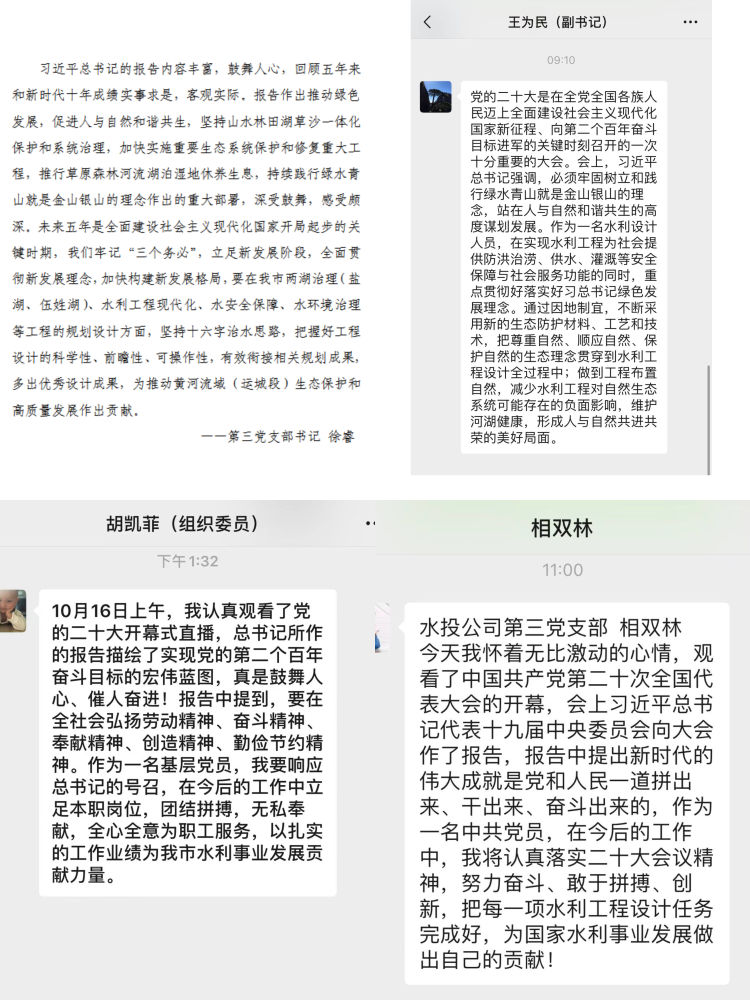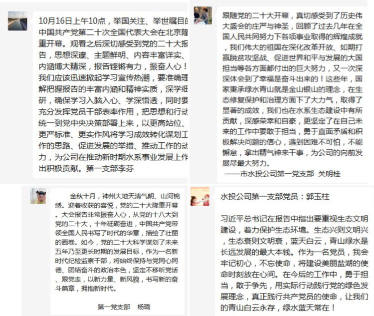習(xí)近平總書記的報(bào)告中指明了生態(tài)文明建設(shè)的重要意義,特別強(qiáng)調(diào)了要“推動(dòng)綠色發(fā)展,促進(jìn)人與自然和諧共生”,令人振奮、催人奮進(jìn),大家紛紛感言,要把黨的二十大精神作為當(dāng)前和今后一項(xiàng)重要政治任務(wù),要學(xué)以致用,立足本職崗位,突出工作重點(diǎn),用黨的二十大精神指導(dǎo)實(shí)踐,做好中心城區(qū)重點(diǎn)水系項(xiàng)目推進(jìn)工作,推進(jìn)黑臭水體治理,強(qiáng)化水質(zhì)提升,解決城區(qū)排澇問題,把黨的二十大精神轉(zhuǎn)化為推進(jìn)公司發(fā)展的強(qiáng)大動(dòng)力和生動(dòng)實(shí)踐,努力在新時(shí)代新征程上展現(xiàn)新氣象新作為。