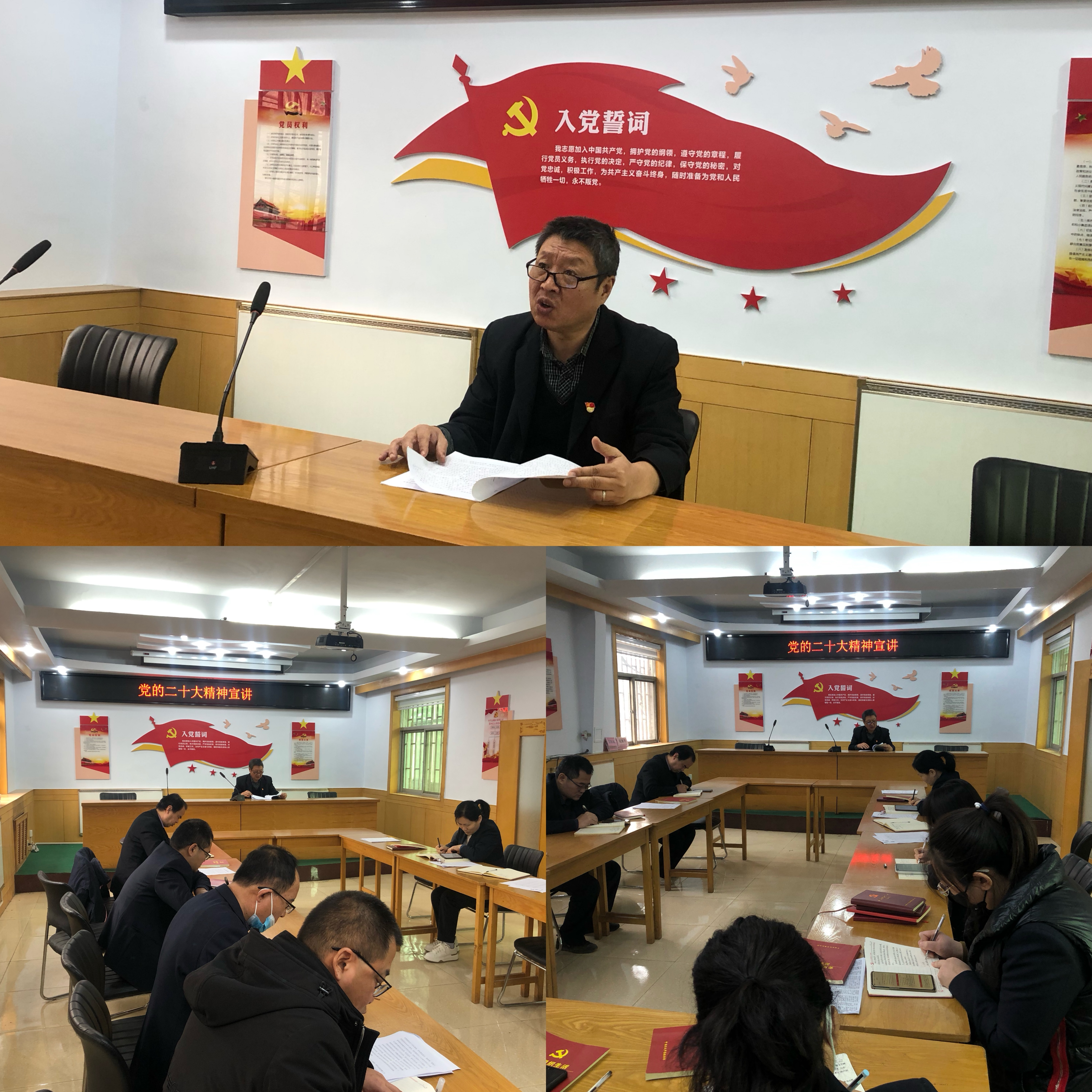 支部書記馮沛濤同志帶領(lǐng)全體黨員齊誦了《黨章》總綱部分內(nèi)容。支委分別領(lǐng)學了:中共中央政治局常務(wù)委員會會議、在二十屆中央政治局常委同中外記者見面時的講話、11月11日省委常委會擴大會議、11月18日山西省委常委會擴大會議、11月23日山西省委常委會會議、省委召開常委會會議暨理論學習中心組學習會、五屆市委第51、53、54次常委會會議及中共運城市委五屆四次全體會議舉行等相關(guān)學習內(nèi)容。