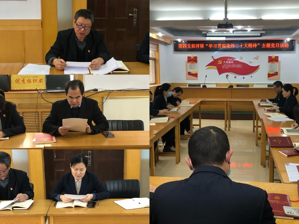 按照市委組織部《關(guān)于認真開展2022年12月主題黨日活動的通知》及公司黨委要求,并結(jié)合支部工作安排,第四支部于12月5日開展“學習貫徹黨的二十大精神”主題黨日活動?,F(xiàn)將情況匯報如下: