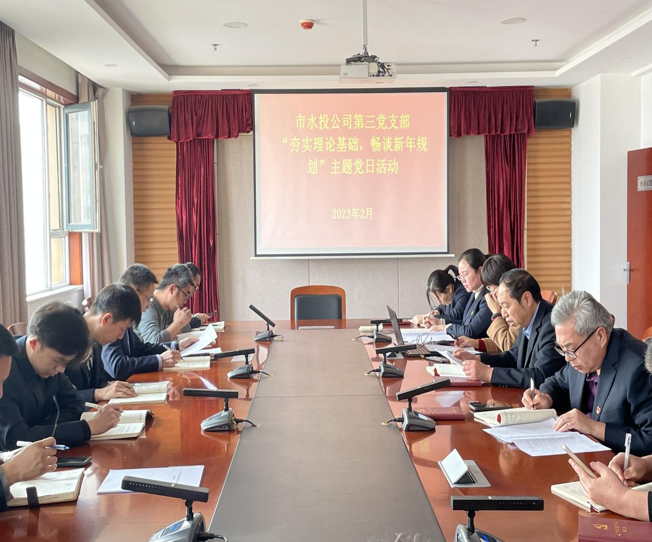 按照市委組織部《關(guān)于認(rèn)真開展2023年2月黨支部主題黨日活動(dòng)的通知》要求,結(jié)合水投公司黨委安排部署,2月6日下午,第三支部組織黨員、各科室負(fù)責(zé)人和群眾代表開展了“夯實(shí)理論基礎(chǔ),暢談新年規(guī)劃”主題黨日活動(dòng)。
