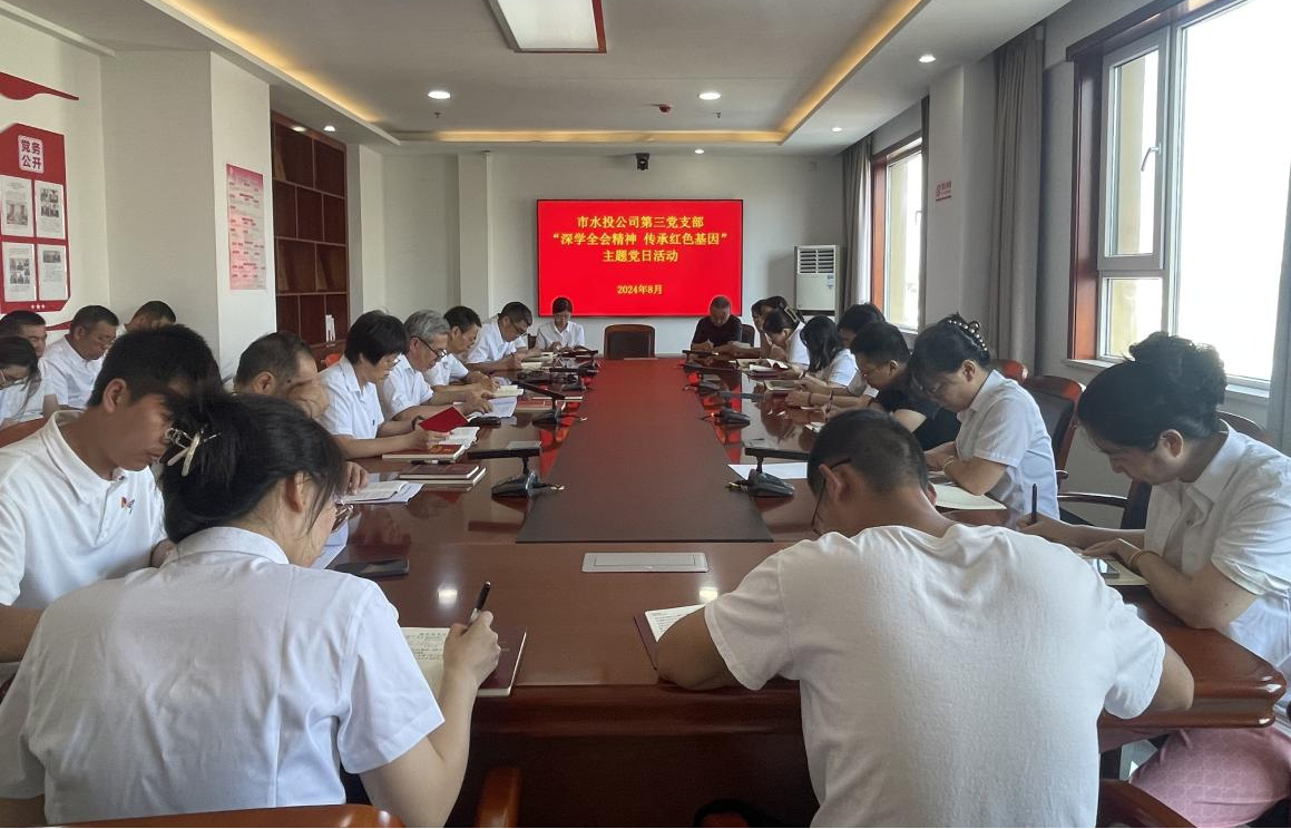 按照市委組織部《關(guān)于認(rèn)真開展2024年8月黨支部主題黨日活動的通知》要求,結(jié)合水投公司黨委安排部署,8月5日下午,第三支部組織黨員開展了“深學(xué)全會精神 傳承紅色基因”主題黨日活動。