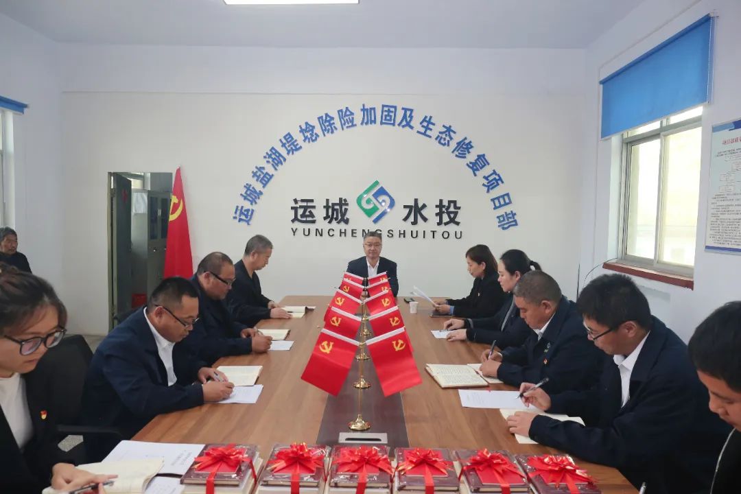 會議首先宣讀了公司黨委《關(guān)于同意成立運(yùn)城鹽湖堤埝除險(xiǎn)加固及生態(tài)修復(fù)項(xiàng)目臨時(shí)黨支部的批復(fù)》,黨委書記、副書記分別向臨時(shí)黨支部授旗、授牌,贈送了黨章、黨徽、黨建圖書、會議記錄本、學(xué)習(xí)資料等,并對鹽湖項(xiàng)目臨時(shí)黨支部的成立表示熱烈祝賀。