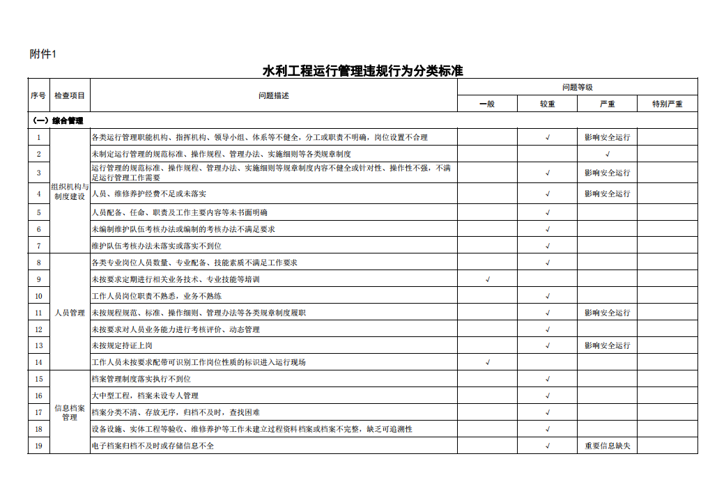 附件:1.水利工程運(yùn)行管理違規(guī)行為分類(lèi)標(biāo)準(zhǔn)
