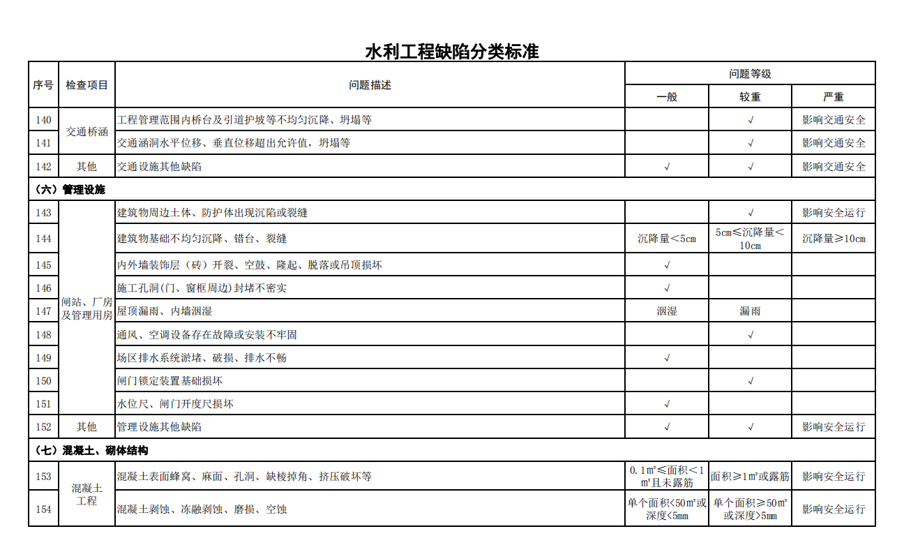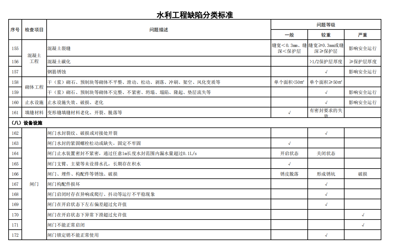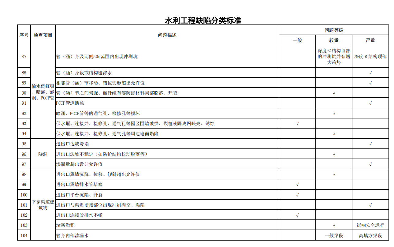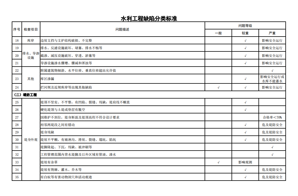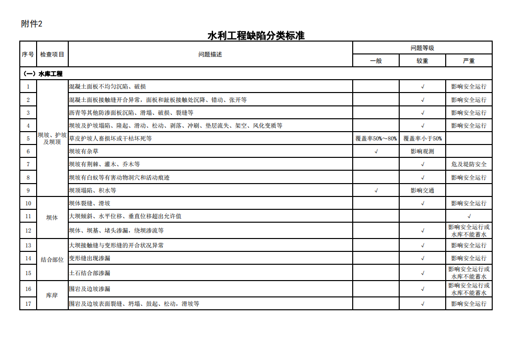 2.水利工程缺陷分類(lèi)標(biāo)準(zhǔn)
