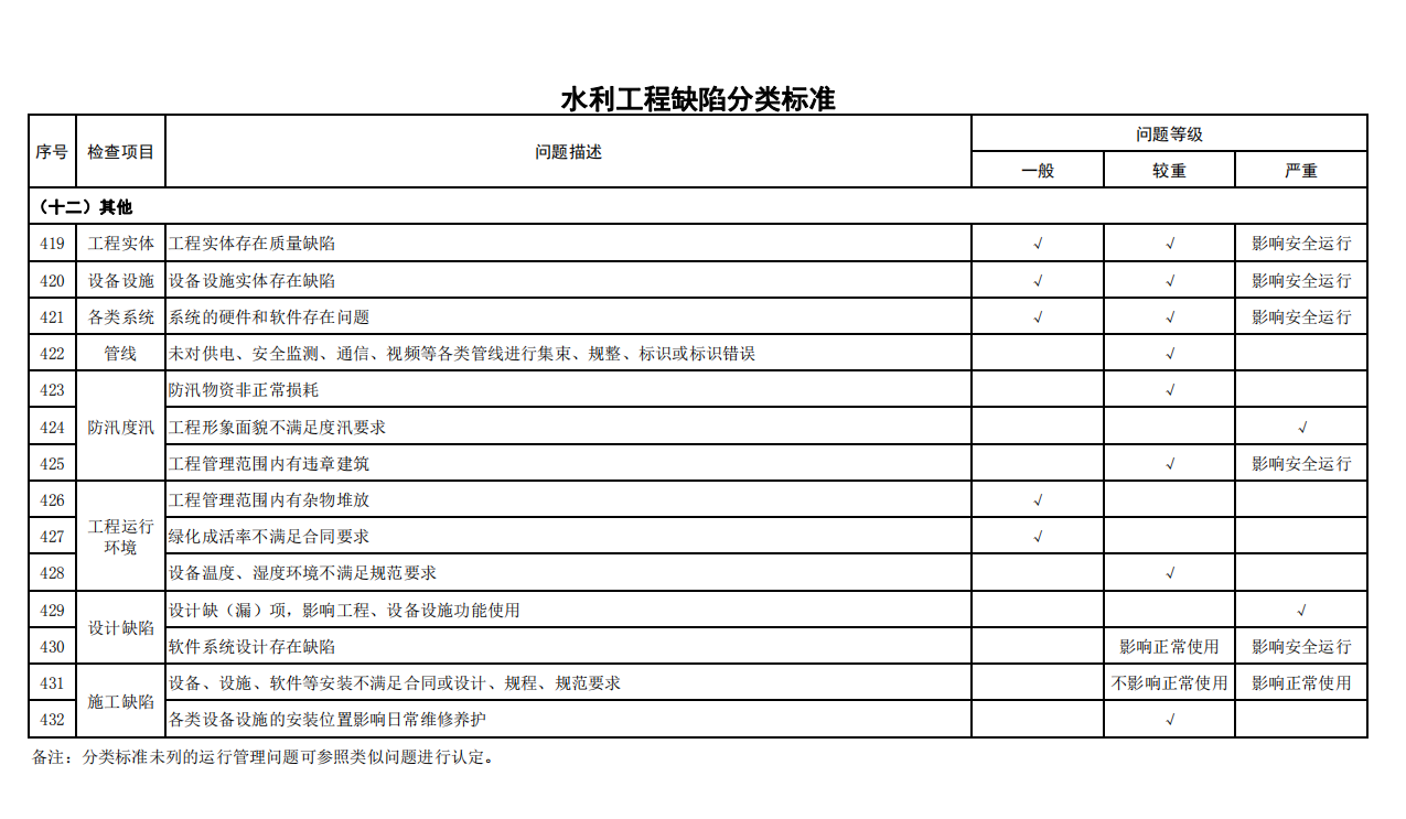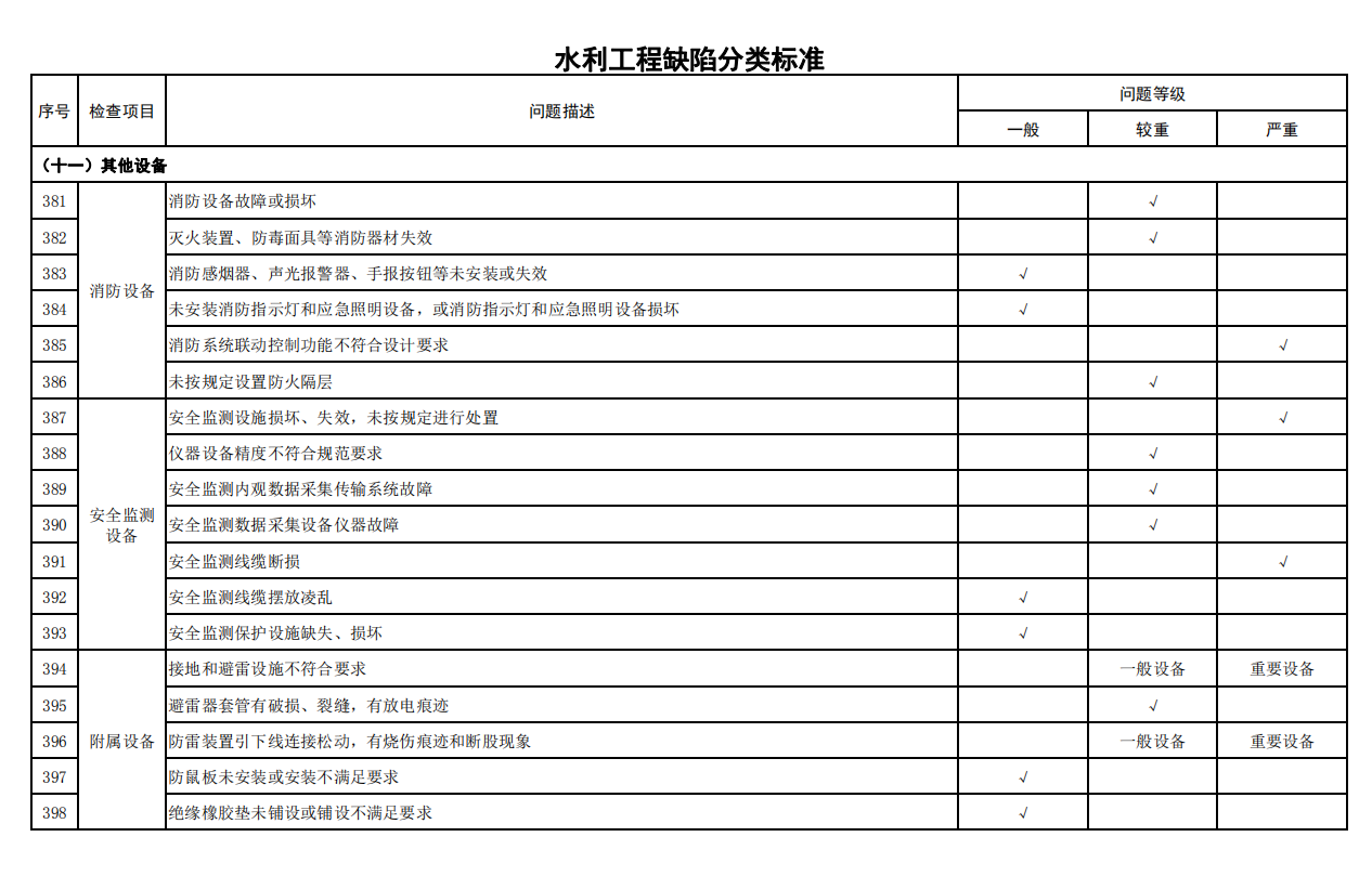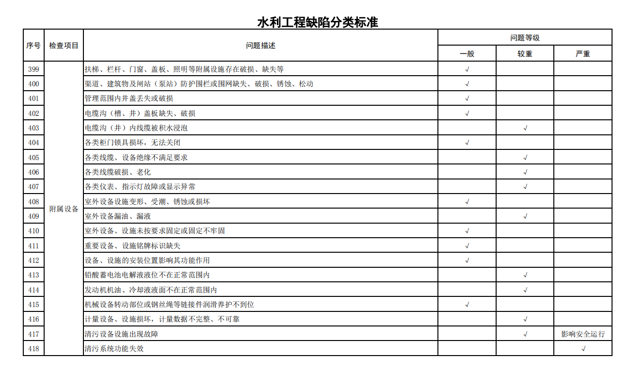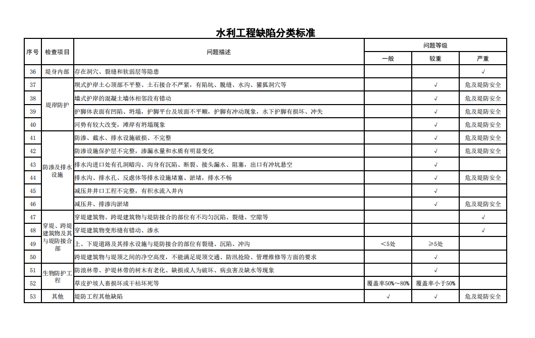 2.水利工程缺陷分類(lèi)標(biāo)準(zhǔn)