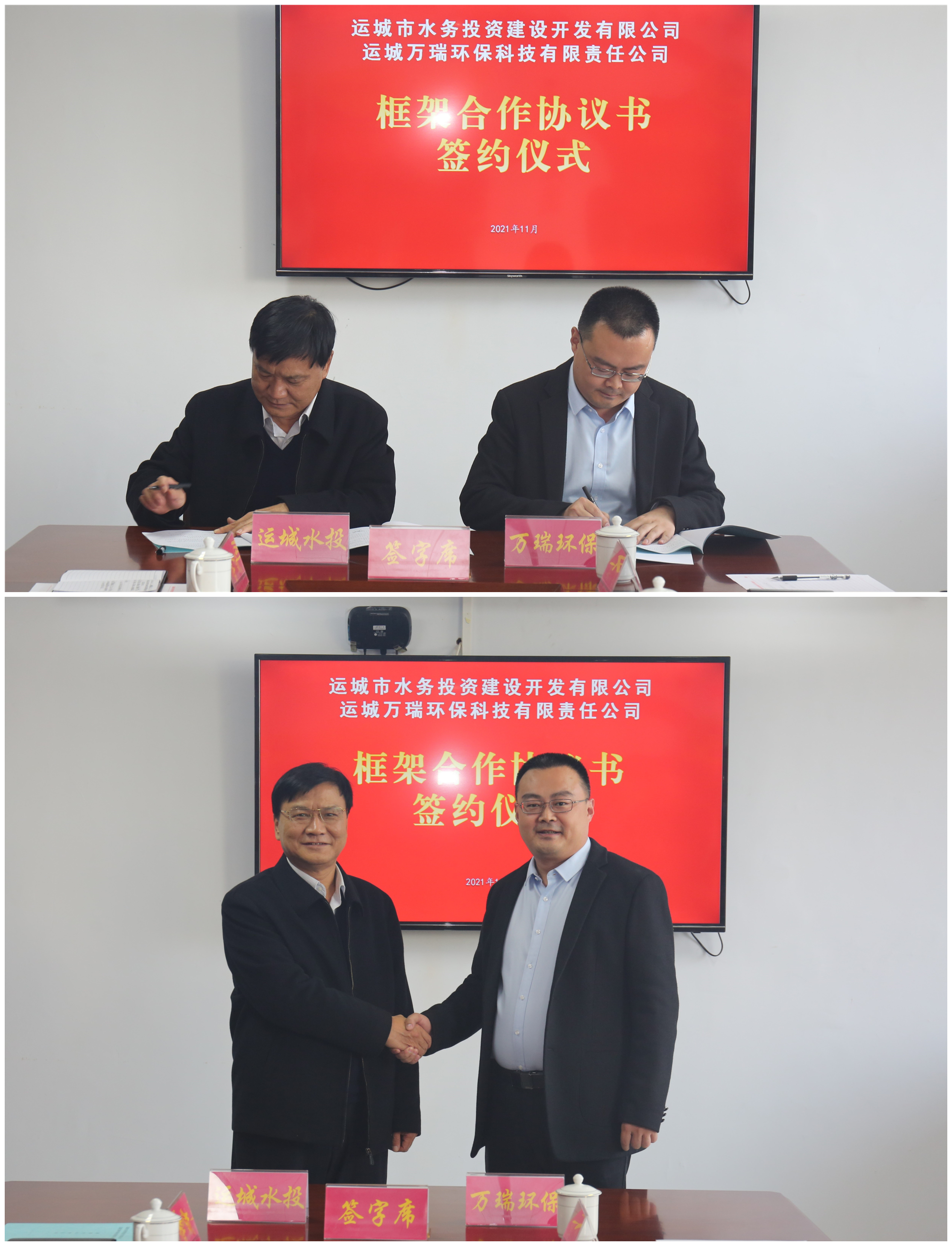 11月5日,運(yùn)城市水務(wù)投資建設(shè)開(kāi)發(fā)有限公司(以下簡(jiǎn)稱市水投公司)與運(yùn)城萬(wàn)瑞環(huán)保科技有限責(zé)任公司(以下簡(jiǎn)稱萬(wàn)瑞環(huán)保公司)框架合作協(xié)議簽約儀式,在市水投公司隆重舉行。