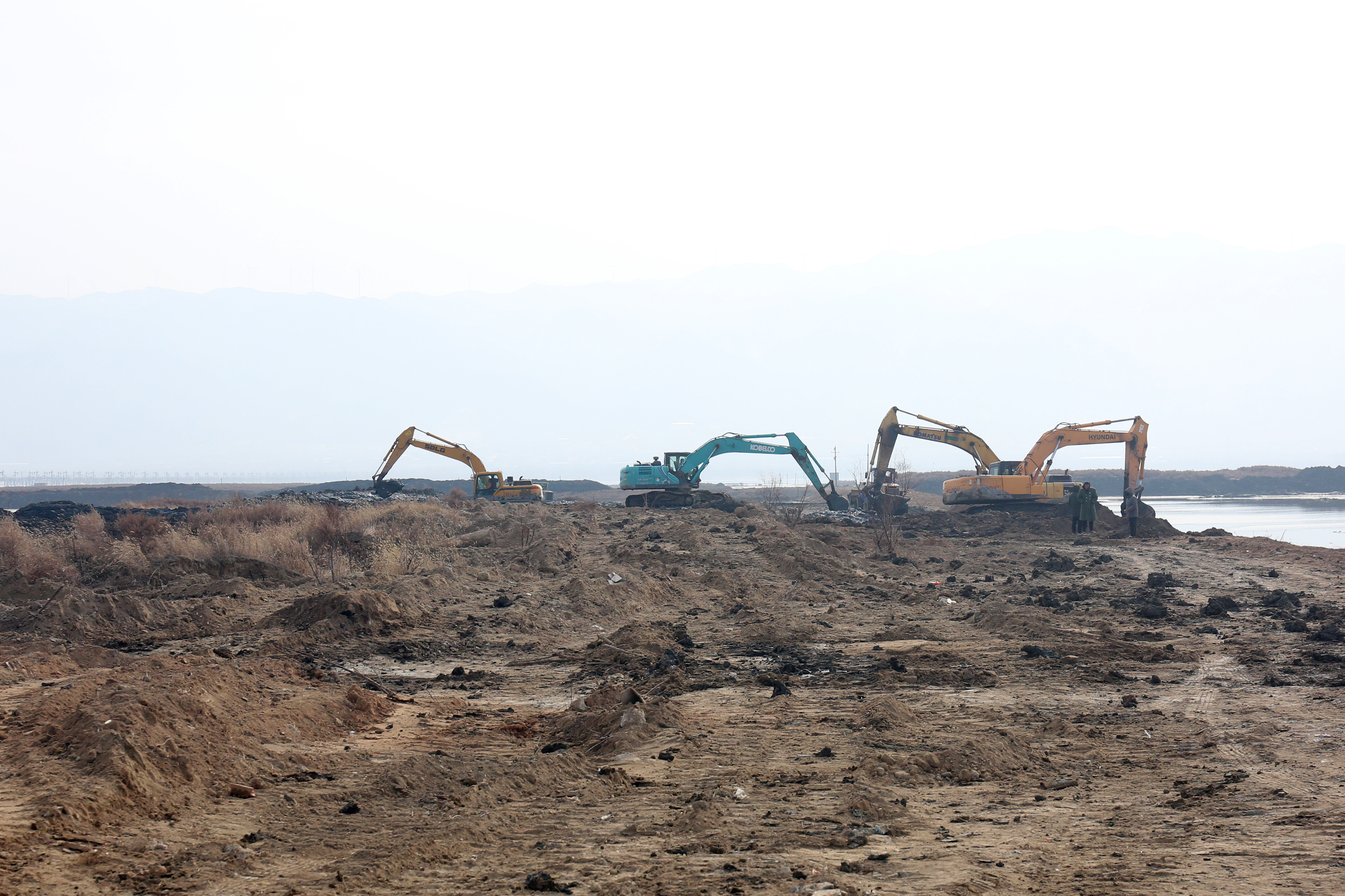 每到一處,詳細(xì)詢問施工人員康復(fù)情況、查看工地建設(shè)情況。干河清水復(fù)流段到處都是忙碌的工人,有安裝鋼壩閘的,有貼花崗巖的,有安裝欄桿的等;鹽湖生態(tài)治理工地上機(jī)械轟鳴,挖掘機(jī)、鏟車、挖泥船等20余臺(tái)大型機(jī)械有序運(yùn)作,施工人員搶抓工期,處處涌動(dòng)著建設(shè)熱潮。