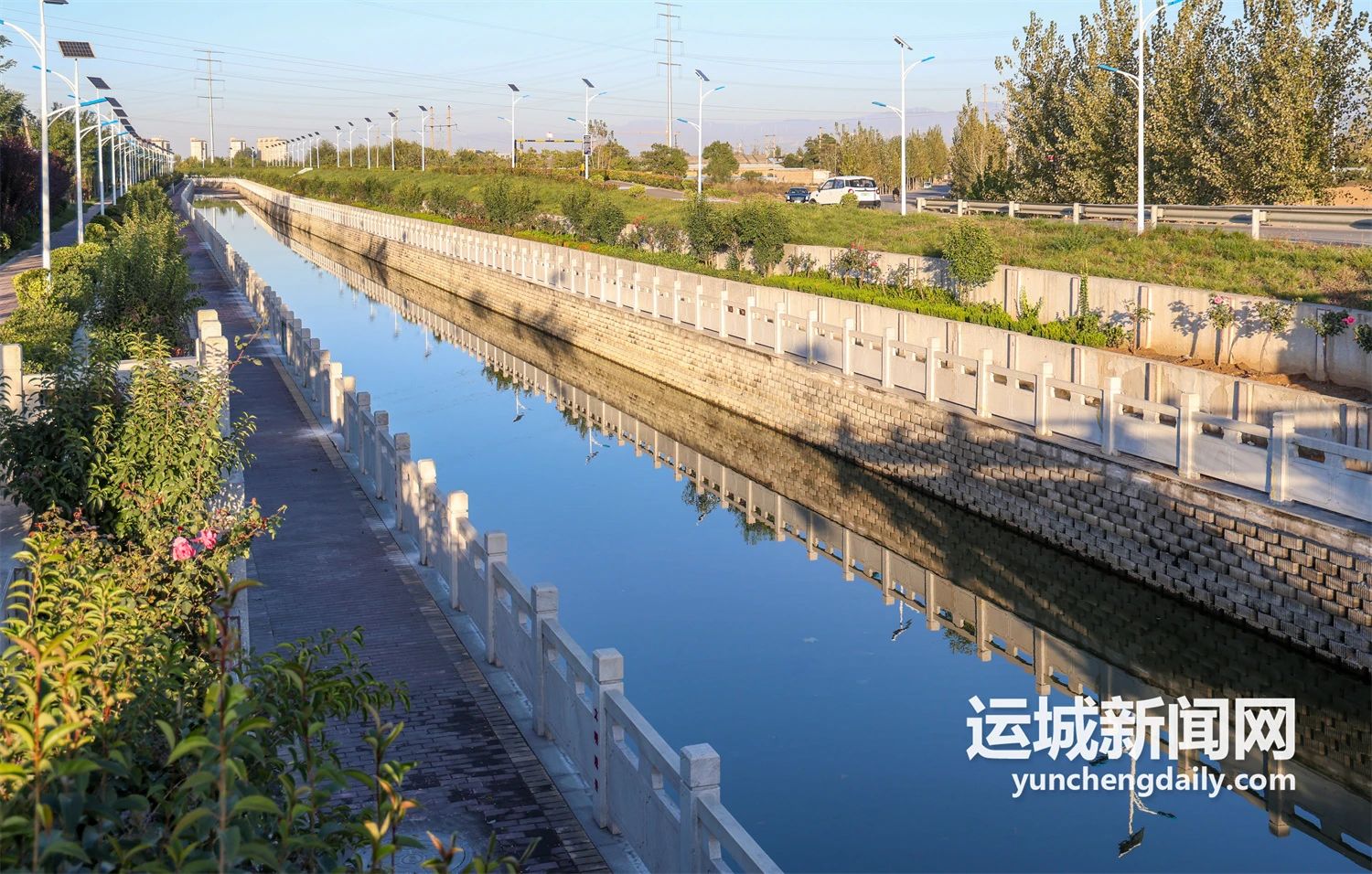 從市區(qū)沿姚暹渠,一路向東,過安邑至空港,“一泓清水穿城過”的生態(tài)廊道美景已然呈現(xiàn):