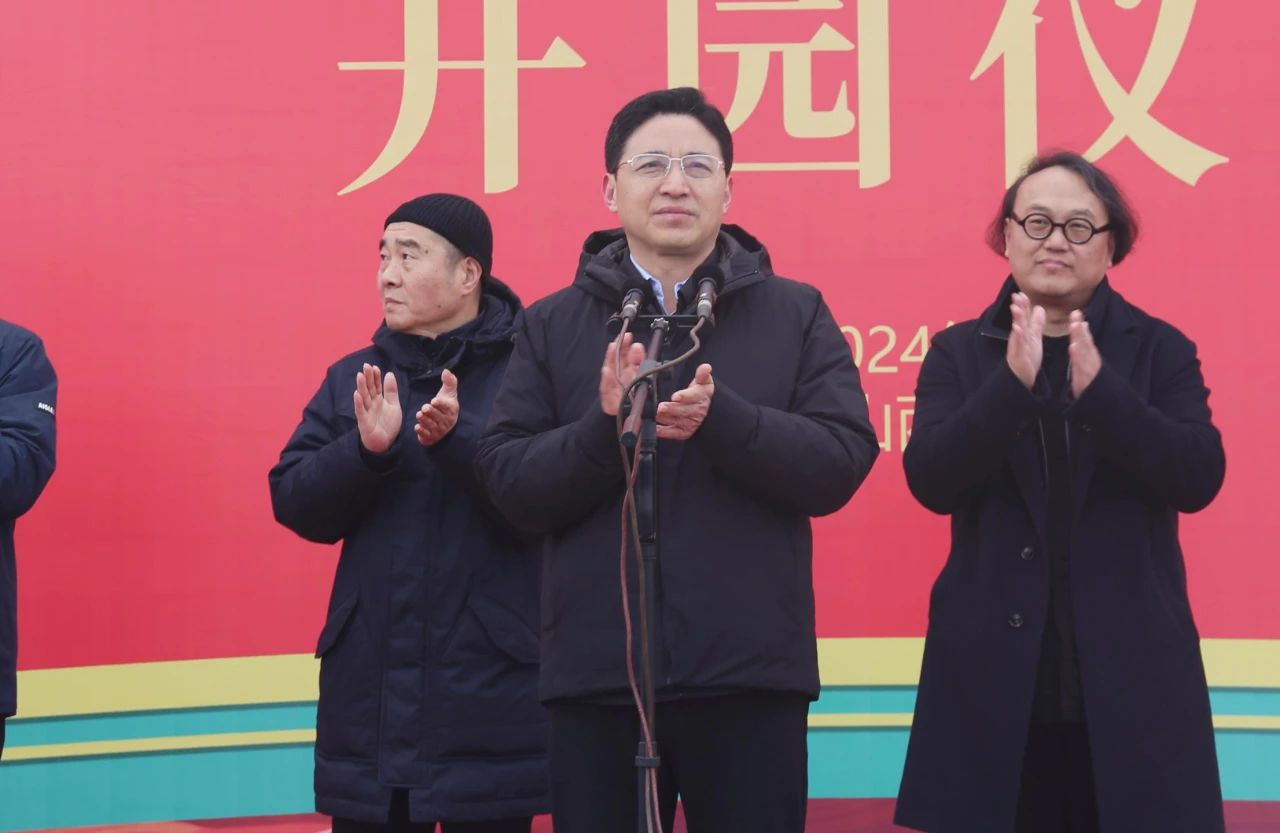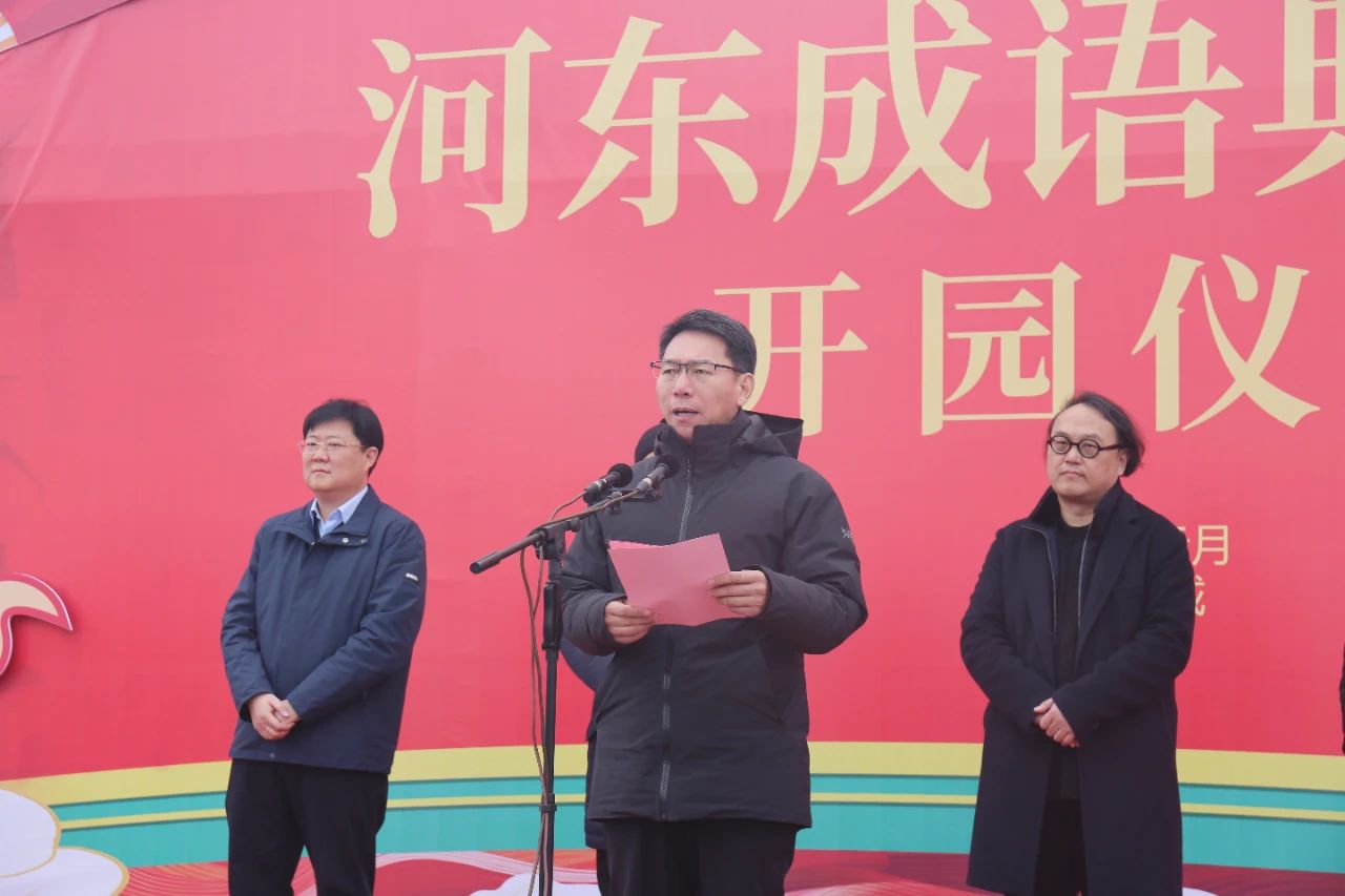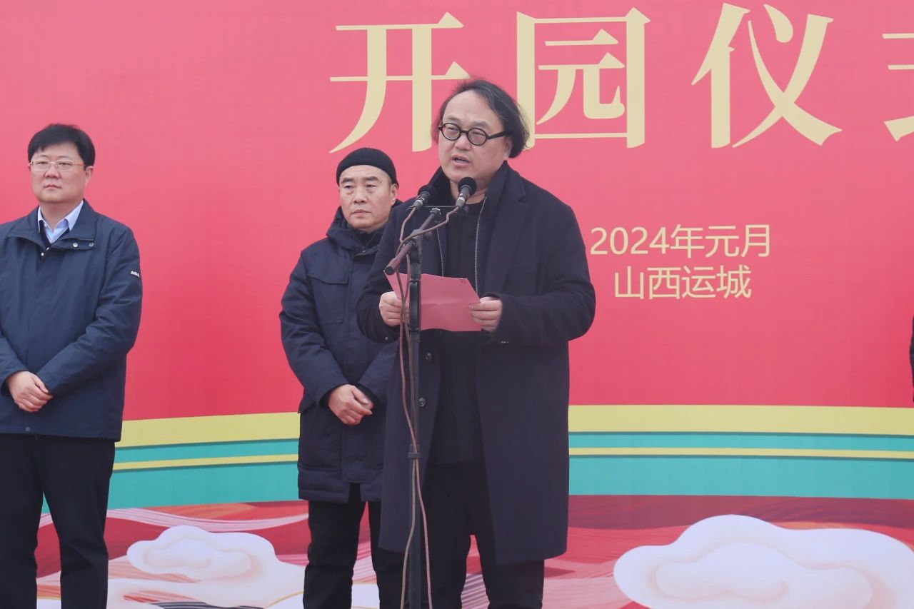 啟動儀式由運城市委宣傳部長王志峰主持,運城市文化和旅游局黨組書記、局長陳小光同志介紹了河?xùn)|成語典故園策劃創(chuàng)意及實體達(dá)效情況;市水務(wù)投資建設(shè)開發(fā)有限公司黨委書記、董事長兼市鹽湖生態(tài)保護(hù)開發(fā)中心副主任崔作銘匯報了河?xùn)|成語典故園建設(shè)概況;中國美術(shù)學(xué)院院長、黨委副書記高世名同志做了致辭;最后中共運城市委副書記、市人民政府市長儲祥好同志宣布河?xùn)|成語典故園開園,臺上領(lǐng)導(dǎo)和嘉賓共同推動啟動桿,百人齊聚,彩煙如虹當(dāng)空,裊裊綻放,共同見證了這一激動人心的重要時刻。