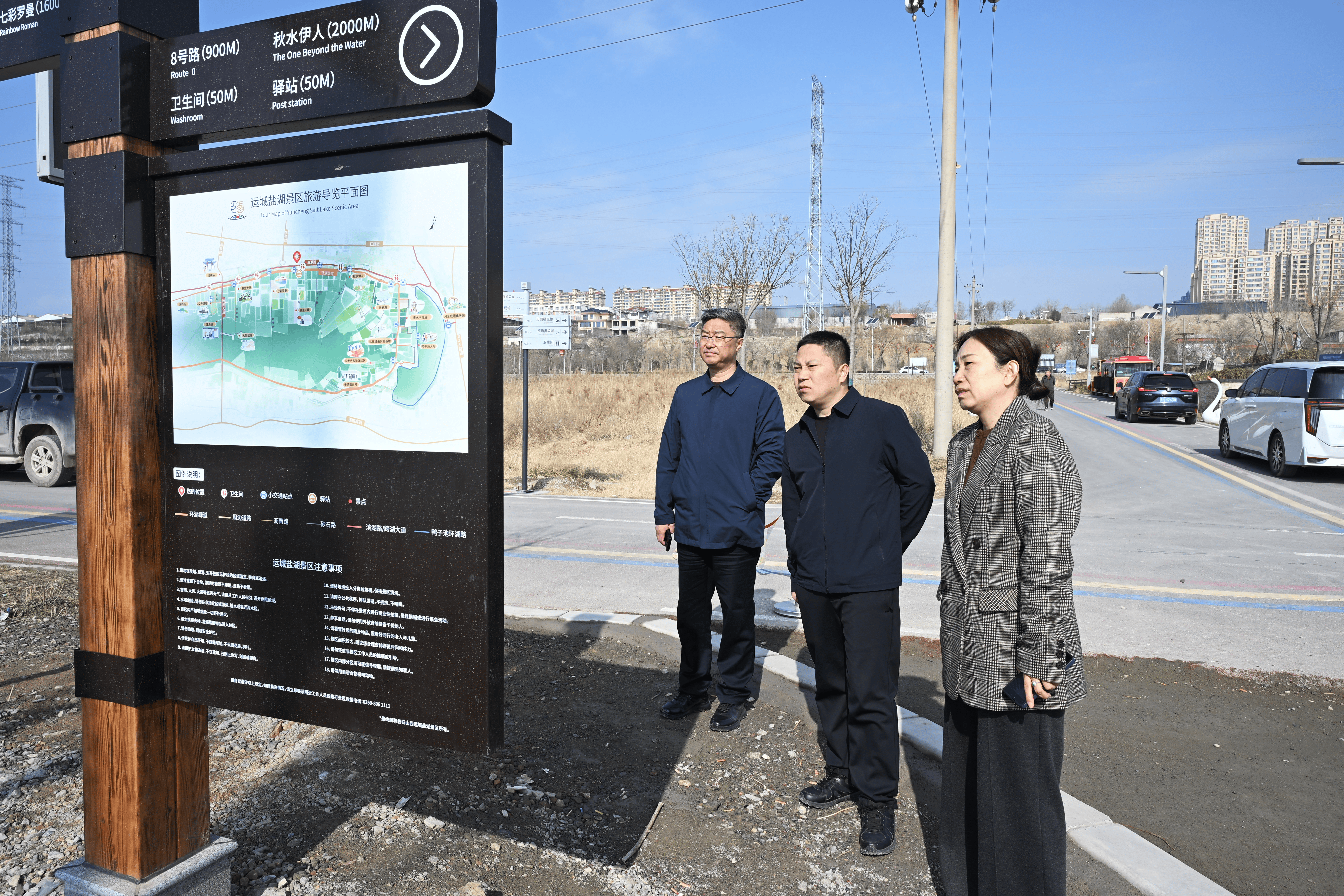 隨后,薛文兵實(shí)地查看五步制鹽體驗(yàn)區(qū)施工現(xiàn)場以及鹽湖景點(diǎn)導(dǎo)視牌設(shè)置情況。他強(qiáng)調(diào),五步制鹽體驗(yàn)區(qū)已進(jìn)入最后攻堅(jiān)階段,要在抓實(shí)安全保障的前提下,確保項(xiàng)目按時(shí)間節(jié)點(diǎn)順利完工;對(duì)景點(diǎn)導(dǎo)視牌的布局、內(nèi)容及外觀設(shè)計(jì)進(jìn)行優(yōu)化,要充分融入鹽池生態(tài)環(huán)境,與自然景觀和諧統(tǒng)一。