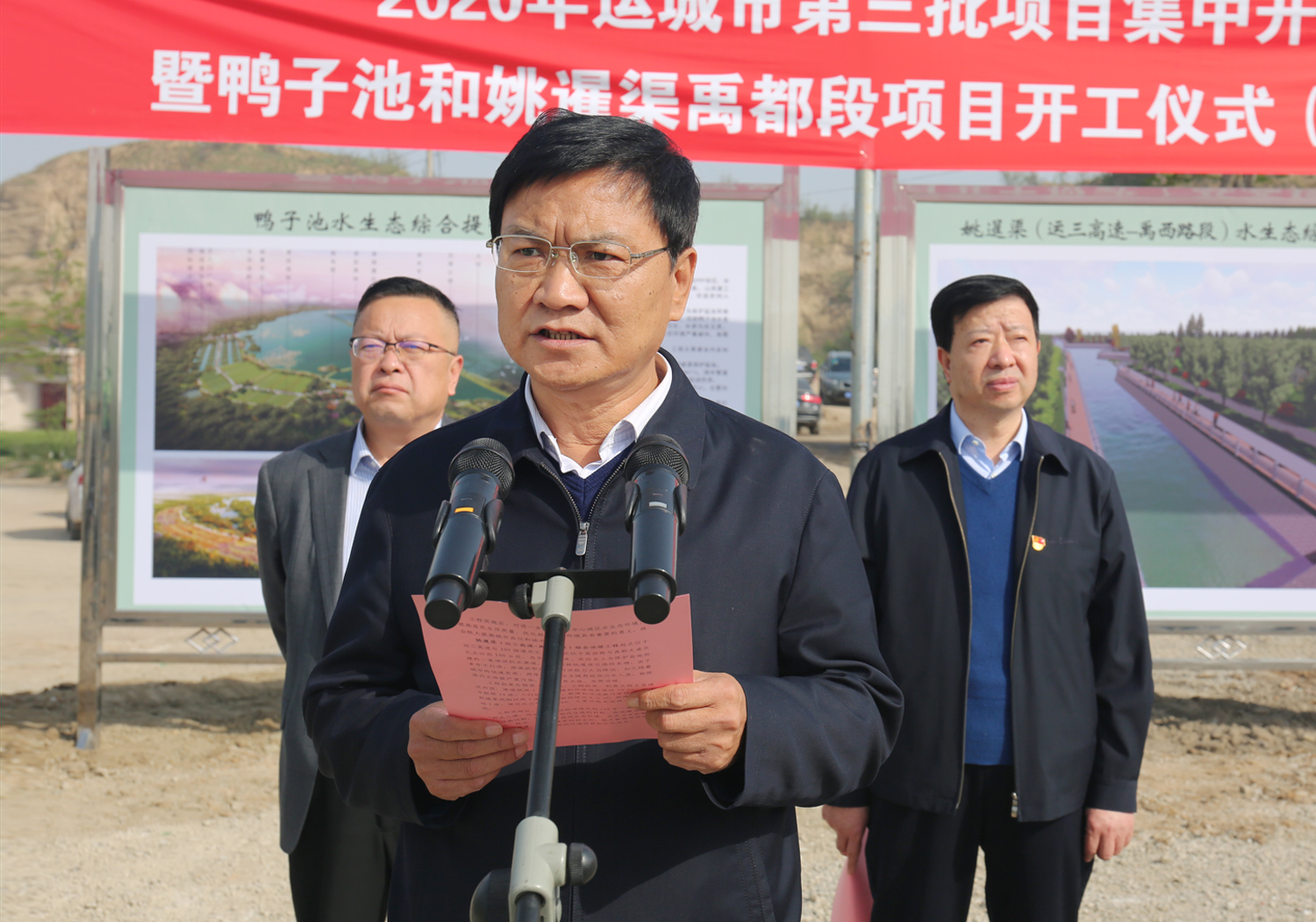 4月15日,在全市第三批重點(diǎn)項(xiàng)目集中開工分會(huì)場(chǎng),鴨子池北口,我公司實(shí)施的“1311”重點(diǎn)工程項(xiàng)目姚暹渠(運(yùn)三高速-禹西路)水環(huán)境綜合治理PPP項(xiàng)目和鴨子池水生態(tài)綜合提升工程PPP項(xiàng)目舉行開工儀式,市水務(wù)局局長靳虎剛,市水投公司董事長崔作銘、副總經(jīng)理呂希汶,運(yùn)城經(jīng)開區(qū)管委會(huì)副主任張大虎、鹽湖區(qū)水務(wù)局局長王杰妮,安邑辦事處主任孔繁榮、東郭鎮(zhèn)鎮(zhèn)長薛世鵬,兩個(gè)工程的項(xiàng)目管理公司高強(qiáng)、胡峰偉董事長,山西建工西北分公司李興波經(jīng)理等部門領(lǐng)導(dǎo)參加了開工儀式。開工儀式由市水投公司副總經(jīng)理范永勝主持。