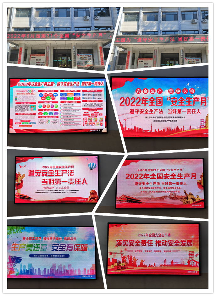 今年6月是全國第21個“安全生產(chǎn)月”,主題為“遵守安全生產(chǎn)法,當好第一責(zé)任人”。為做好今年“安全生產(chǎn)月”的宣傳工作。近日,我公司通過門頭電子屏滾動播放宣傳標語、室內(nèi)電子屏展示安全生產(chǎn)知識、微信群發(fā)放最新版《中華人民共和國安全生產(chǎn)法》,時刻提醒公司全體員工遵守安全生產(chǎn)法,履行安全生產(chǎn)責(zé)任制。