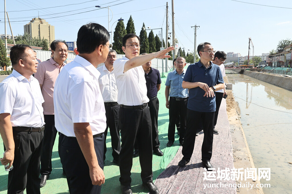 7月7日下午,市委書記丁小強深入城東污水處理廠末端明渠處、鋪安街安邑石門處、鋪安街安邑湖項目建設現(xiàn)場、禹都南大門姚暹渠綜合治理工程現(xiàn)場、機場大道干河明渠段治理現(xiàn)場等地,調(diào)研中心城區(qū)防汛備汛工作,并主持召開中心城區(qū)防汛備汛工作會議。市委副書記、市長儲祥好出席會議并提出具體要求。市領導陳杰、喬登州、刁海鵬等參加。